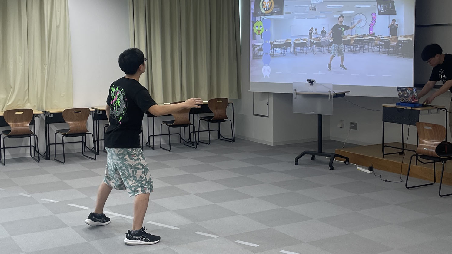 このゲームは、ICTパークが開発したオリジナルゲームで、手がそのままコントローラーになり、手を動かしてイラストに触れて、キャッチします。